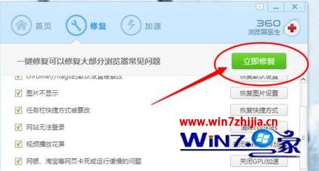 5、浏览器自动修复,打开浏览器在右下角找到浏览器医生,打开进行重置修复所有问题;